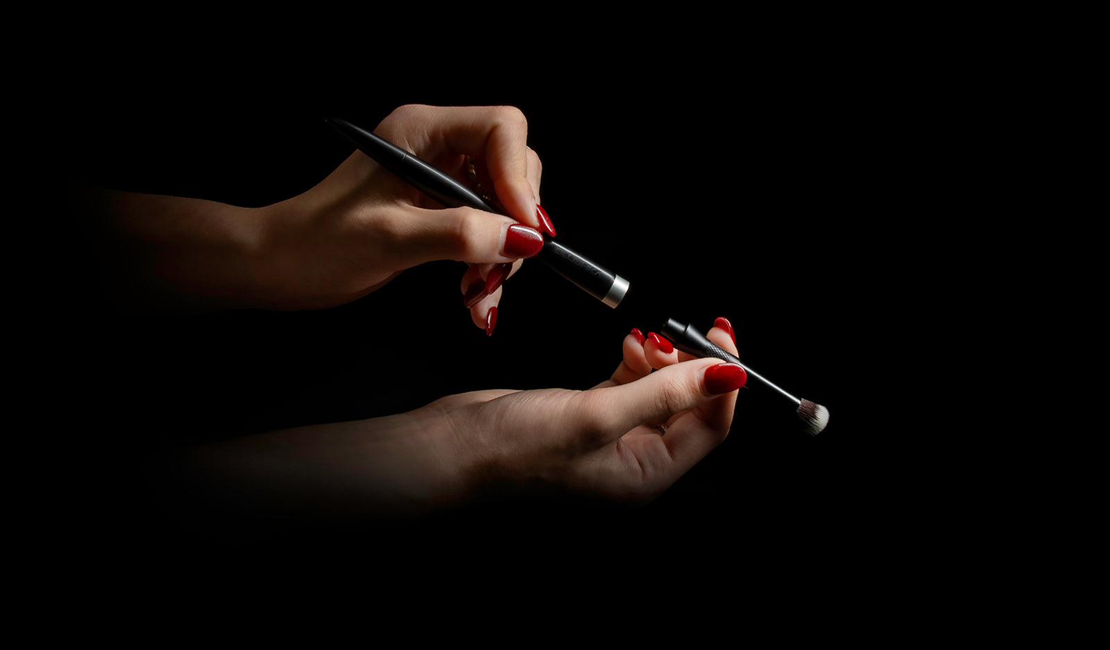 Uniquely designed wands with interchangeable heads and counterbalance weights help to define make-up artistry.